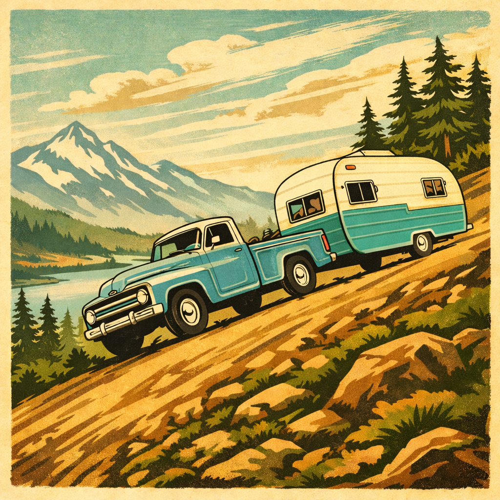 All the roads out here include a lot of ups and downs in close succession, but when we came across this one we stopped in our tracks. It’s far steeper than any of the other grades we encountered in the area, the road narrows significantly at the bottom, and—to top things off—the lowest point was submerged by an inch or two of slowly moving running water. At first, we attempted to back up until we could find a turn around point and reverse course. However, we repeatedly had to stop due to other cars coming from both directions. At one point a local driving by rolled down his window and talked to us. He encouraged us to go forward because it’s ‘not as bad as it seems’. I guess he was right because we did decide to proceed forward, but we had real concerns about scraping the bumper of our 30′ Airstream while climbing the other side of the road. I found no evidence of scraping after we got home, but I would never again attempt to tow our rig across this point in this road. Unless you have a smaller rig (25′ or less), we recommend staying clear of this section of the road.