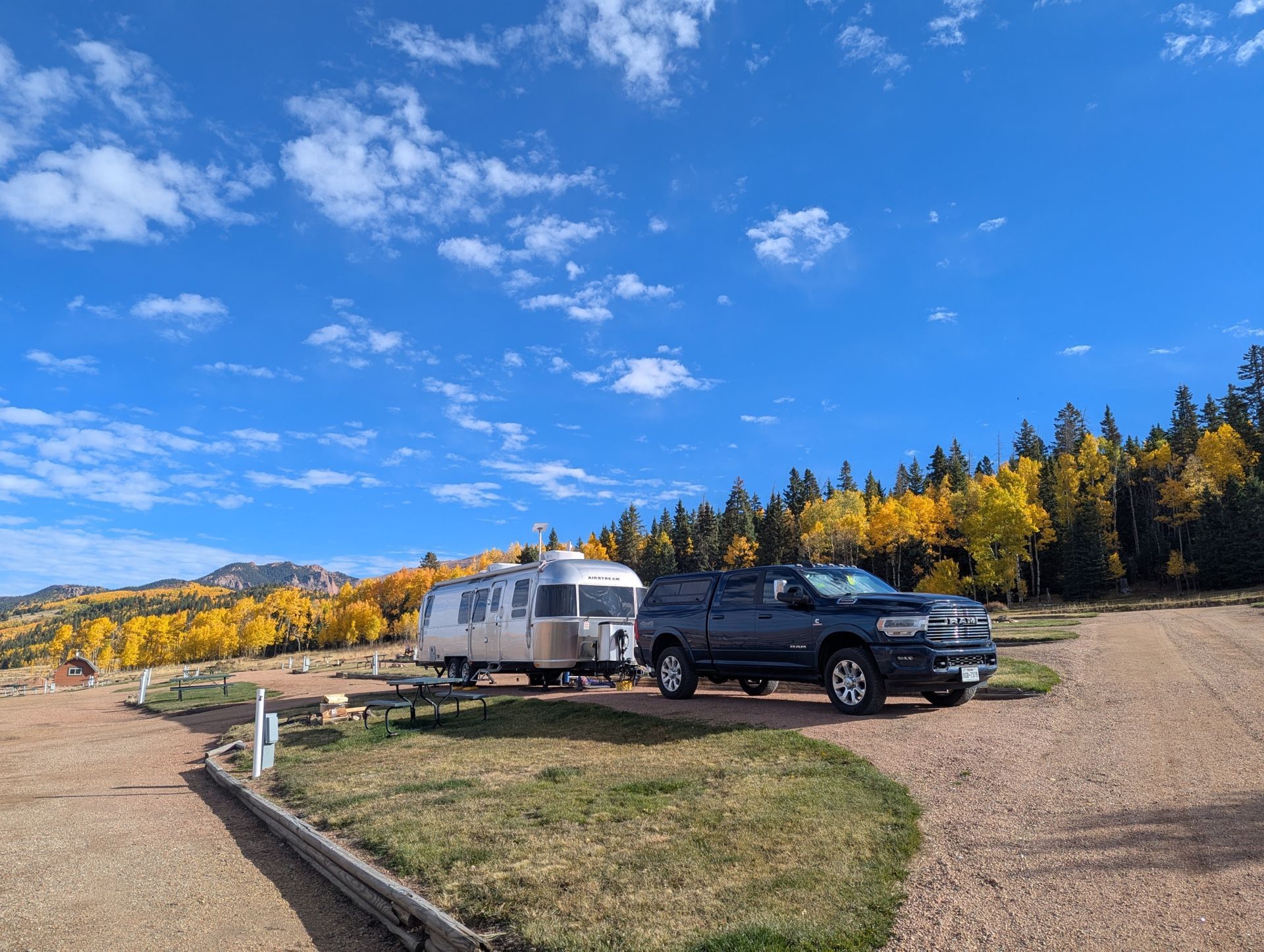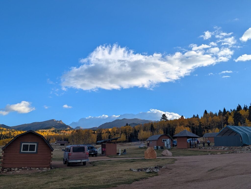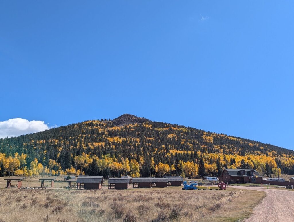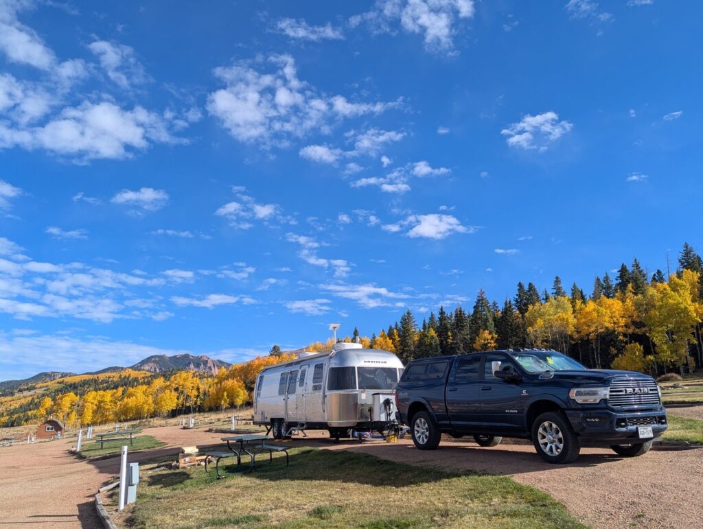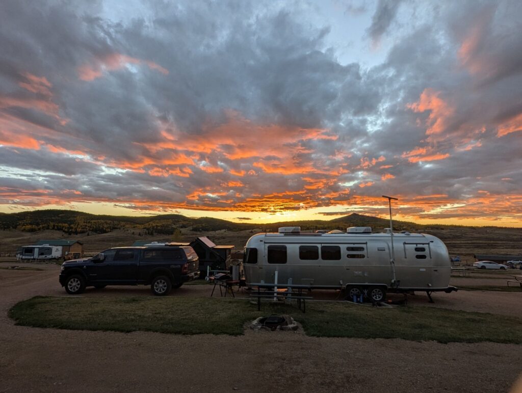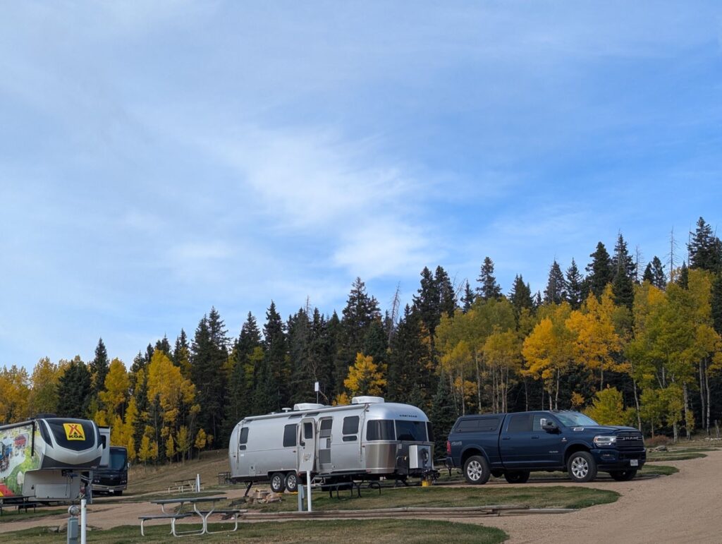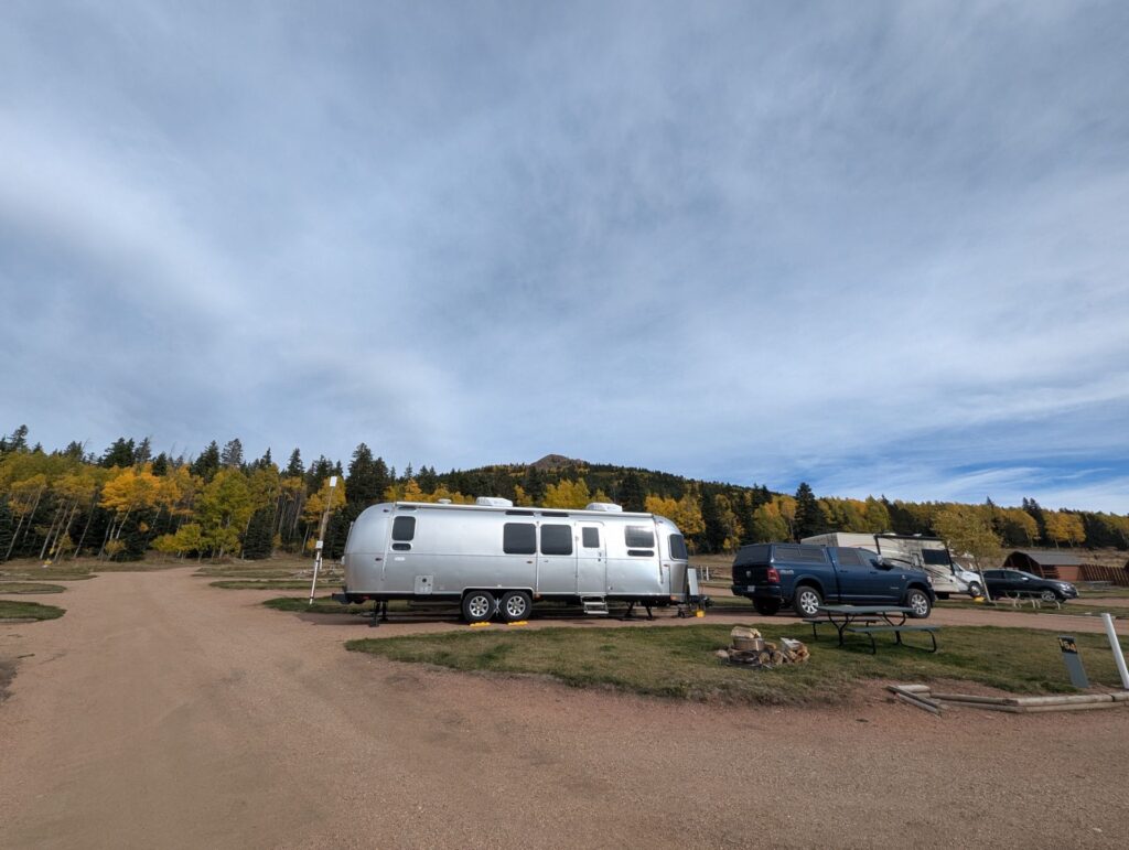 This park was absolutely breathtaking! Both in the good way (because it was so beautifully scenic) and the not-so-good way (because the high altitude really knocked the wind out of our sails.) It helped that were there late September / early October when the trees were starting to change color and the park wasn’t crowded. We really enjoyed our time here. Our main disappointment was only staying for a week. The bathrooms and showers were very clean and nice, the park grounds were immaculate, and the owners was very friendly. The sites are definitely on the cramped side and the roads are fairly narrow, but we didn’t have much trouble maneuvering our 30′ Airstream in or out. There were some much larger 5th wheels in there, so clearly this place can handle big rigs. There wasn’t much to do in the immediate vicinity outside the park, so any exploring requires a drive. (This isn’t terribly surprising; it’s in a fairly remote area.) Since we were only there a short time, we didn’t get to do much exploring, but there was a nice hiking trail right behind the park that has been marked with reflectors on trees by the owners. We did this several times during our stay. (Just note that the trail is not on AllTrails, so you’ll have to ask the park staff for directions.) There weren’t many trees inside the park, which is good for Starlink, but there is no shortage of trees in on the park’s perimeter. Highly recommend this place. Just be prepared to take it easy the first day or so because of the altitude.